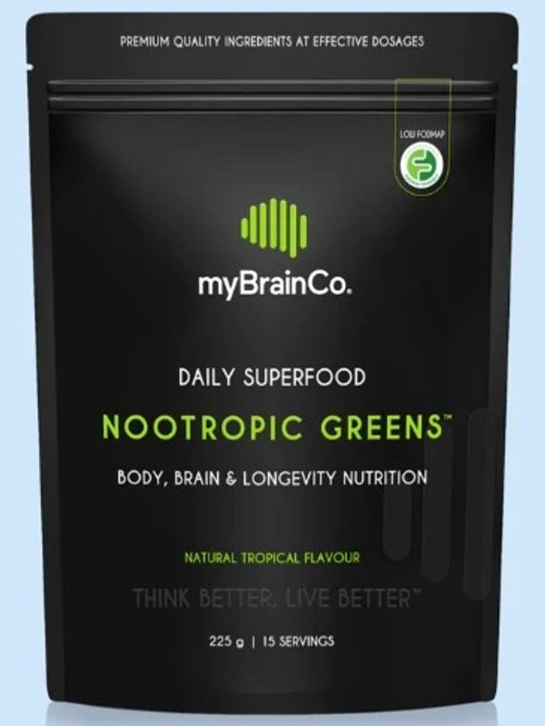 This is an award-winning superfood blend for energy, focus, and longevity. Packed with organic whole food nutrients, adaptogenic mushrooms, and powerful ingredients like NAC, Alpha-GPC, and Nicotinamide Riboside (NR). It is vegan-friendly, FODMAP-certified, and free from artificial additives.